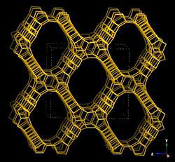 | | projection along 100 | projection along 010 | | | projection along [001] | supercage with 10- and 12-rings connecting main channels |